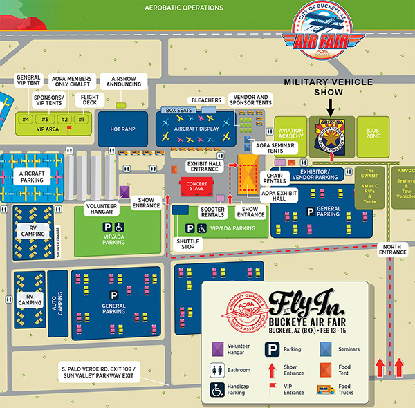 Buckeye site layout, click to load full size. Gridview overlay, click to load full size. Have a military vehicle? Youβre invited to display it: AMVCC club membership encouraged but not required. Setup begins Thursday, February 12. Show off your piece of history and even compete for awards, no entry fee to display! Email events@armytrucks.org Swap Meet Application Email events@armytrucks.org List of services A Legacy of Historic DisplaysThis marks our 35th annual show, and over the decades weβve proudly grown from humble beginnings at the Papago Military Museum to venues across the Valley including Peoria Sports Complex, Metrocenter Mall, Tempe Diablo Stadium, Heard Scout Pueblo at South Mountain and more. Since 2022, weβve found a fantastic partner in the Buckeye Air Fair and weβre excited to bring you another unforgettable show in 2026. We have grown to have as many as 80+ military vehicles and live reenactor living history displays. We are in discussions to have a national show in 2027! For AMVCC Members